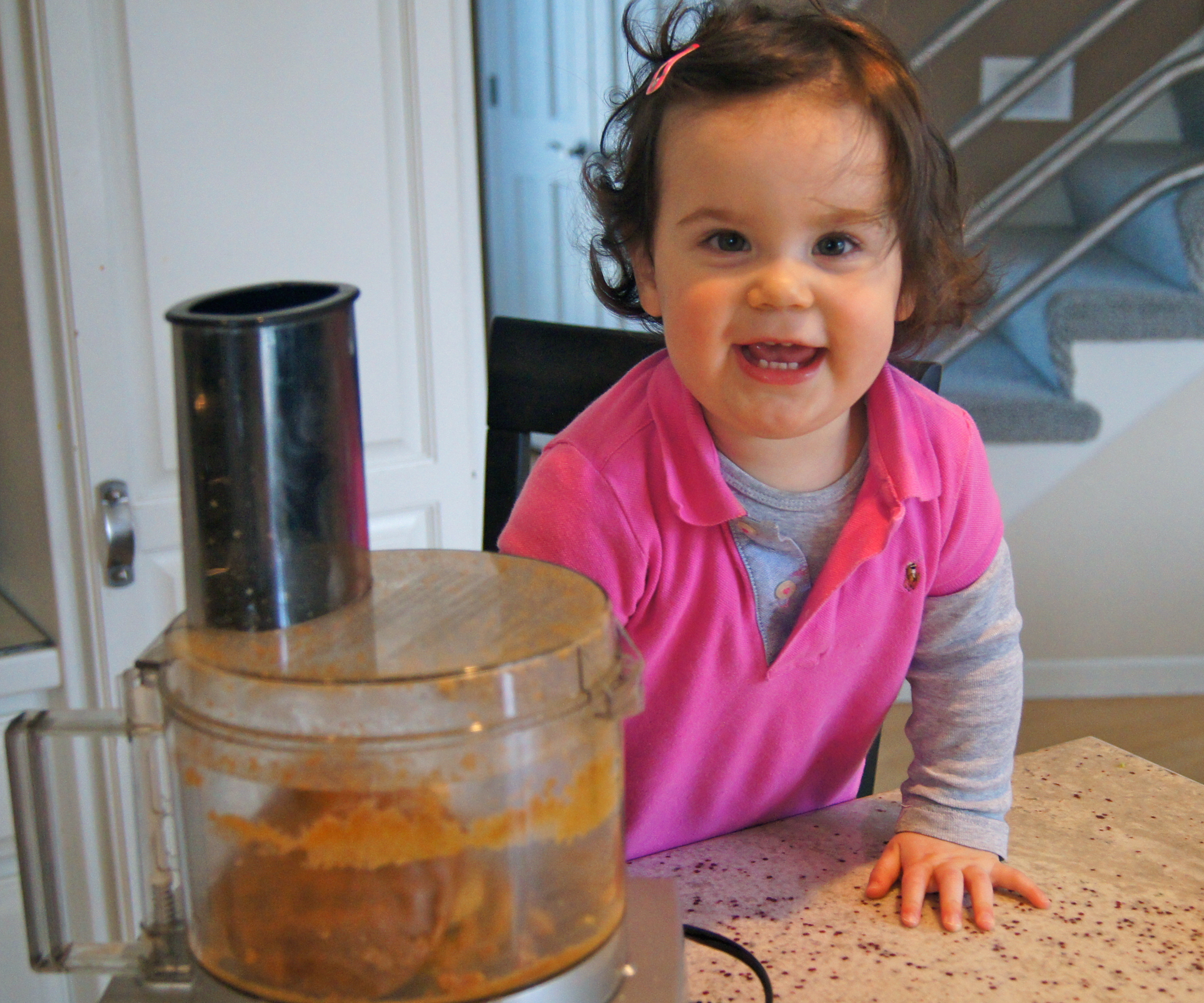 Preheat oven to 350.  Combine all of the ingredients in a food processor and process for 4 minutes.  Turn off the motor, stir the loose dough to combine and firmly press it together with your hands, forming a ball.  Place dough ball in plastic wrap and let chill in the refrigerator for 15 minutes.  My sous chef gets a kick out of the food processor
