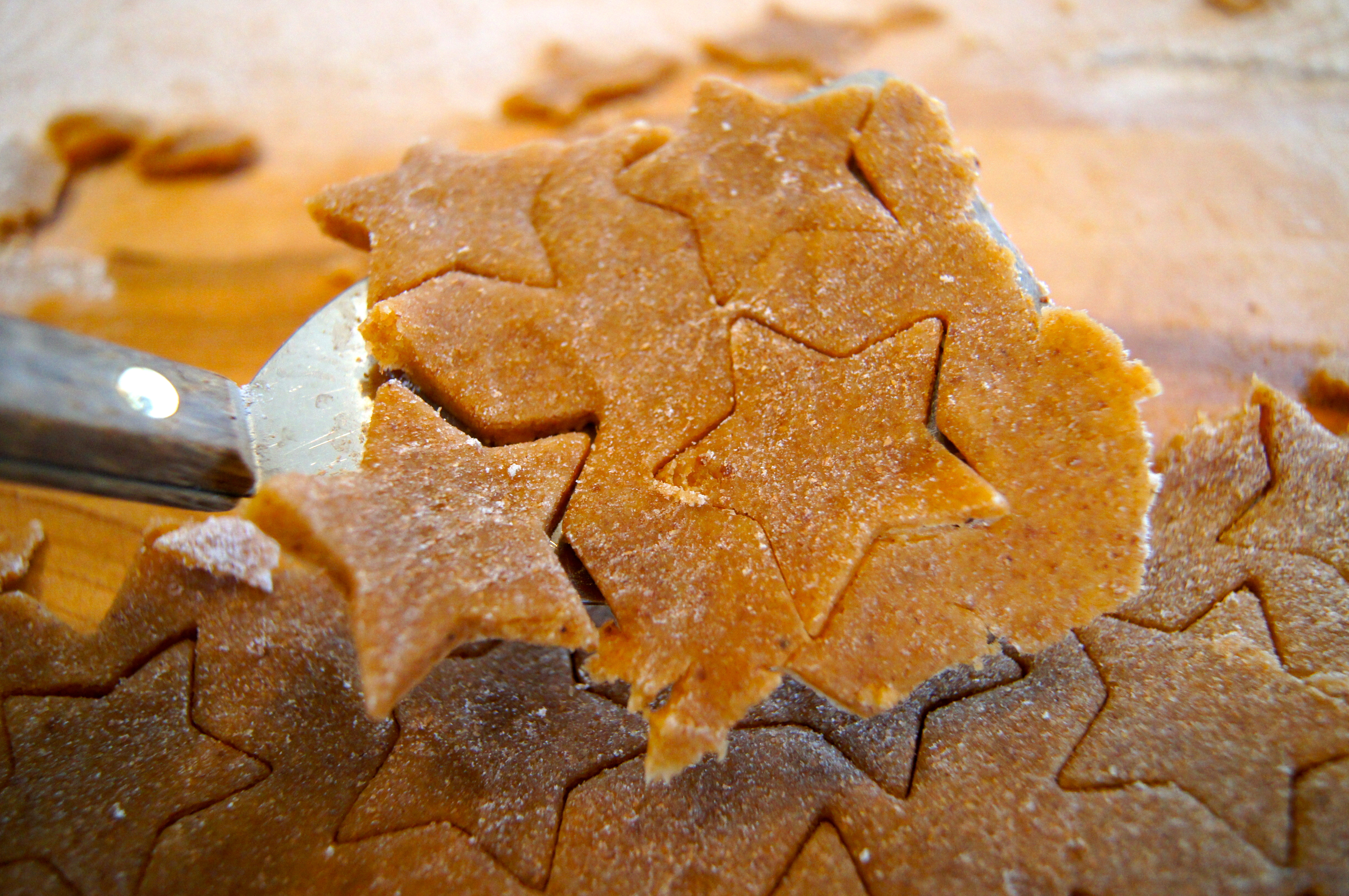 ImageNext, take a small spatula and scoop up as much dough as you are able to fit onto the spatula.  Remove the excess dough around the shapes so that all you are left with is the shapes you’ve cut out, like this