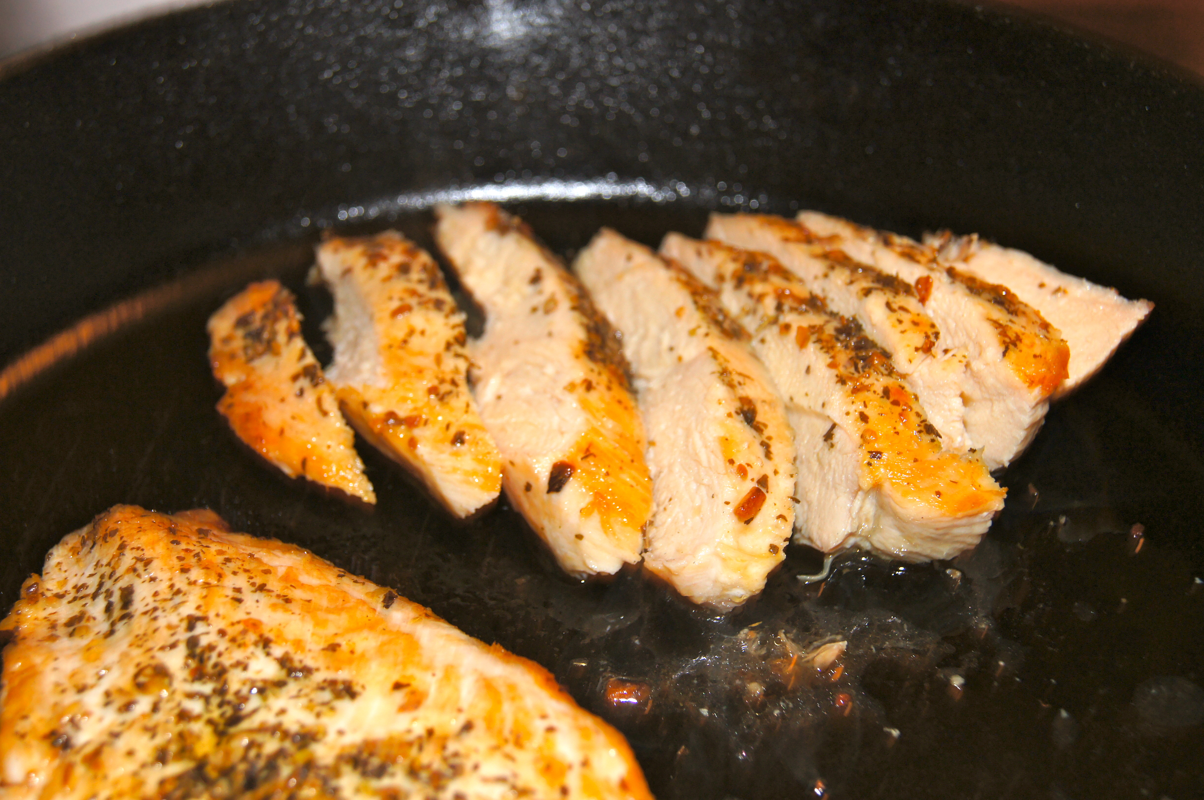 Be sure to slice the chicken after it has rested while it is still in the pan…this allows you to coat the slices with all of those savory pan juices.