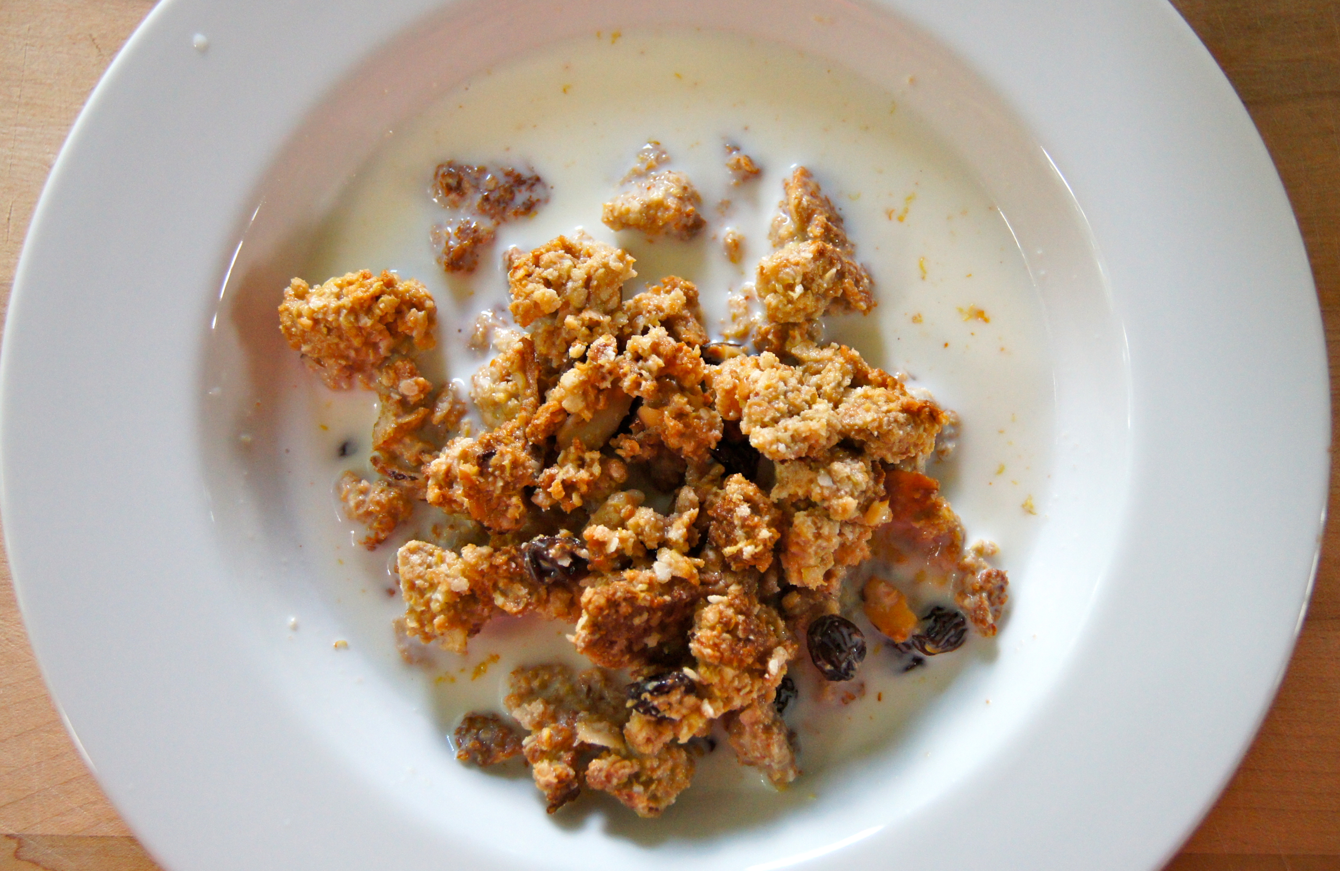 I am always trying to create new ideas for healthful, protein rich breakfasts and snack ideas for my toddler, specifically, and this recipe is one I will continue to utilize (it doesn’t hurt that my husband and I love it, too). It is a great replacement for store bought cereals that are loaded with refined flours, sugar and additives. This granola is packed with real protein, fiber and antioxidants and is sweetened with pure maple syrup which contains great amounts of manganese and zinc. All in all it’s a great treat to have on hand, whether you eat it for breakfast with milk poured over it or you grab a cluster for a mid afternoon fix.