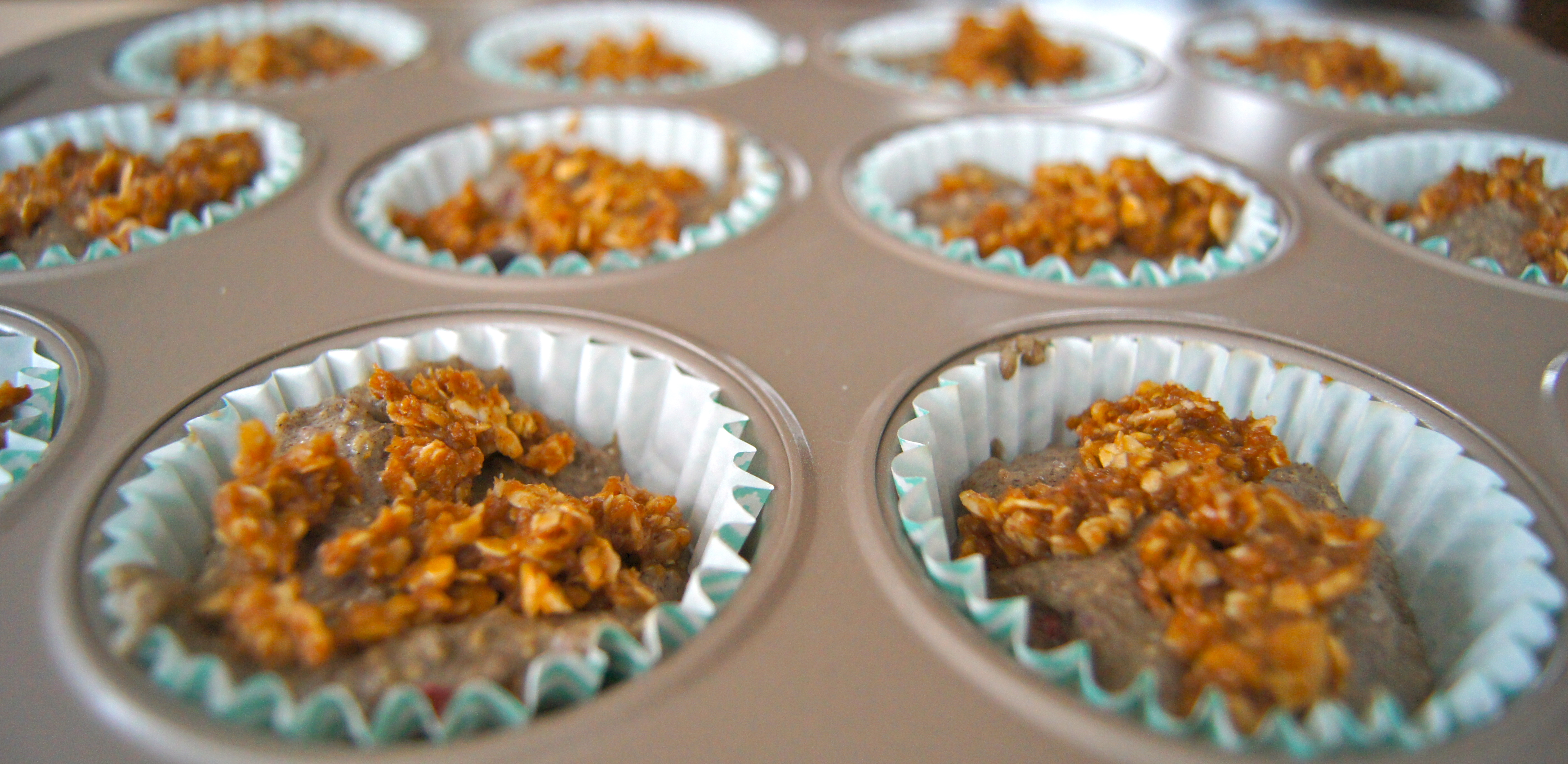 Preheat oven to 350 and grease or line 12 muffin cups. In a medium bowl whisk together oat flour, buckwheat flour, almond meal, flax meal, baking powder, baking soda and salt. In a separate bowl whisk together eggs, coconut sugar, milk, honey, vanilla and coconut sugar or butter. Pour the dry ingredients into the wet ingredients and stir well until just combined. Stir in berries. Fill the muffin cups up about 2/3 of the way full and sprinkle the streusel topping evenly among the tops of the muffins. Bake for 25 minutes or until a toothpick comes out clean when inserted into the middle of the muffin. Makes 12 muffins.