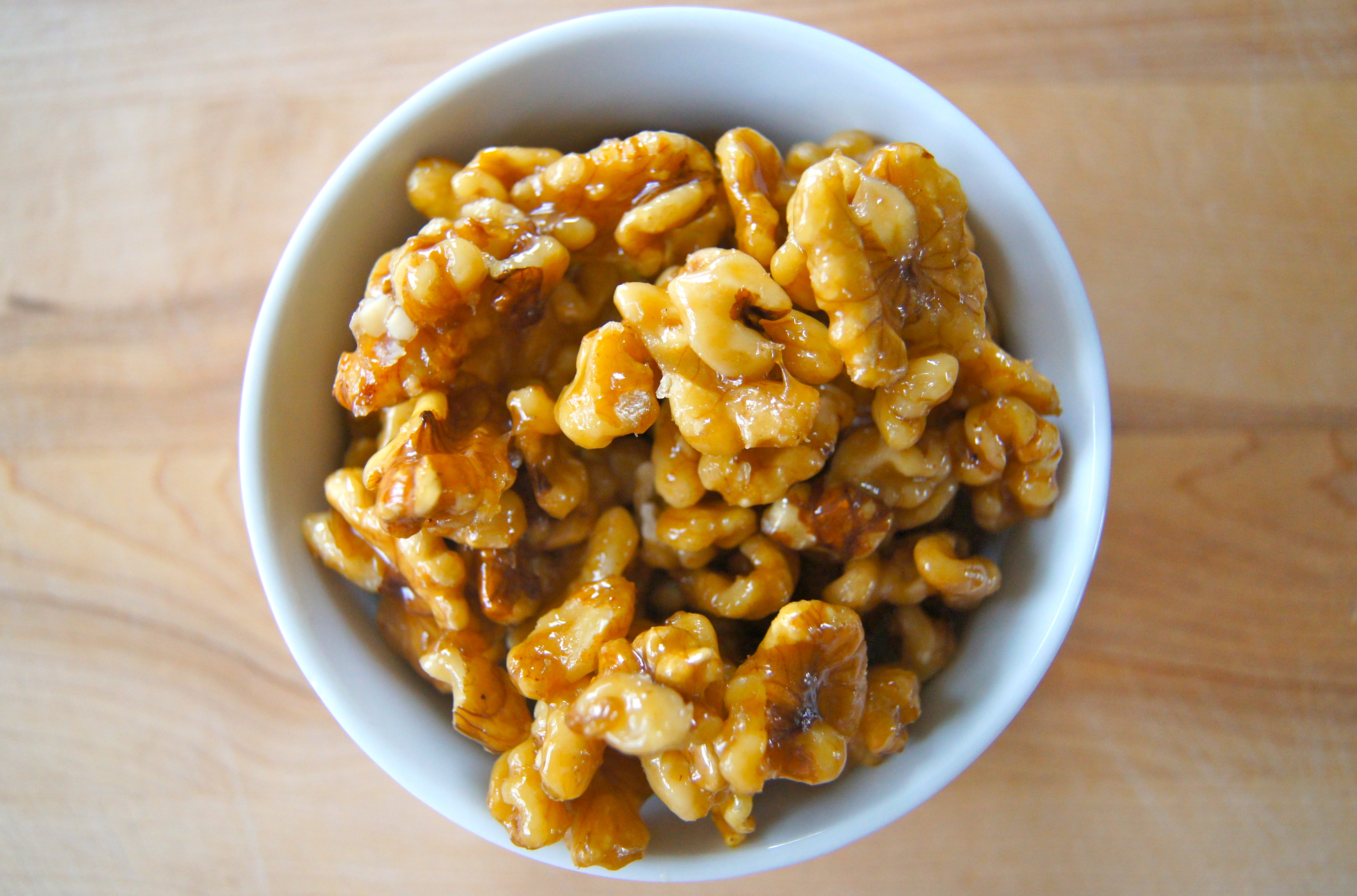 My darling friend, Jackie, came over for a visit yesterday. It was a perfect rainy day date that involved some much needed catching up and a little yoga for Jackie and Georgia (Jax-her cobra pose is looking amazing today 😉 ) She was planning to be here over lunch and being the procrastinator that I am I had nothing planned to serve. I had all of the fixings for a salad but needed something to add to make it special and not so “thrown together”. These maple walnuts were just the perfect touch. They are such an awesome addition to any salad but my favorite way to serve them is with mixed greens, bleu cheese, sliced apple and balsamic vinaigrette. They literally take less than five minutes to make and turn a pretty simple salad into an exceptional one. On another note, if you are looking for the perfect homemade hostess gift these are the perfect fit. They are so versatile; add some cinnamon or cayenne pepper for a different twist. Top them on a salad, nosh on them alone for a sweet treat…or dare I say it? On top of vanilla ice cream. Mouth officially watering.