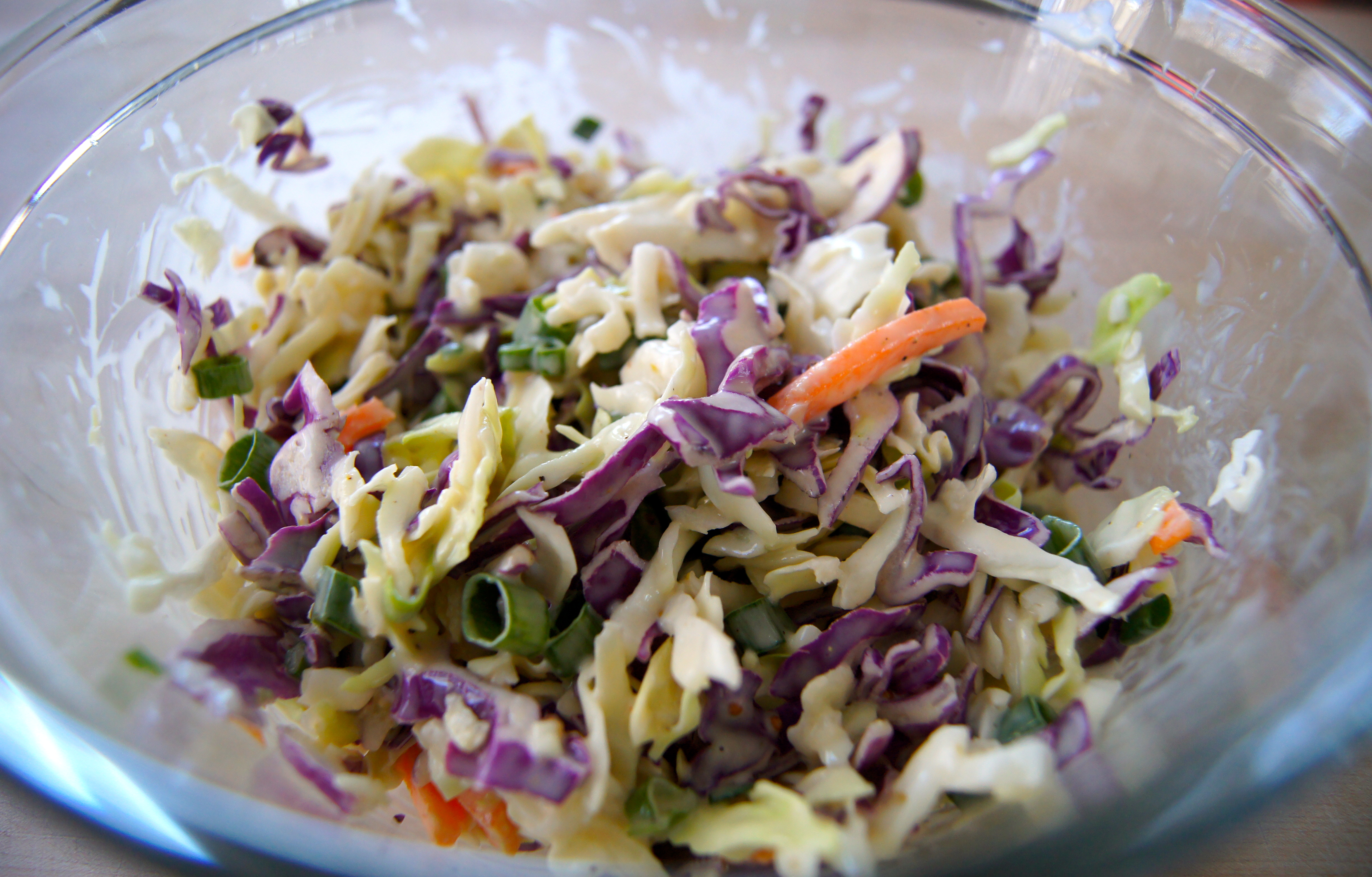 Whisk the yogurt, mayo, vinegar, honey, salt, pepper and paprika together in a large bowl. Add the cabbage, green onion and cilantro and stir until completely combined.