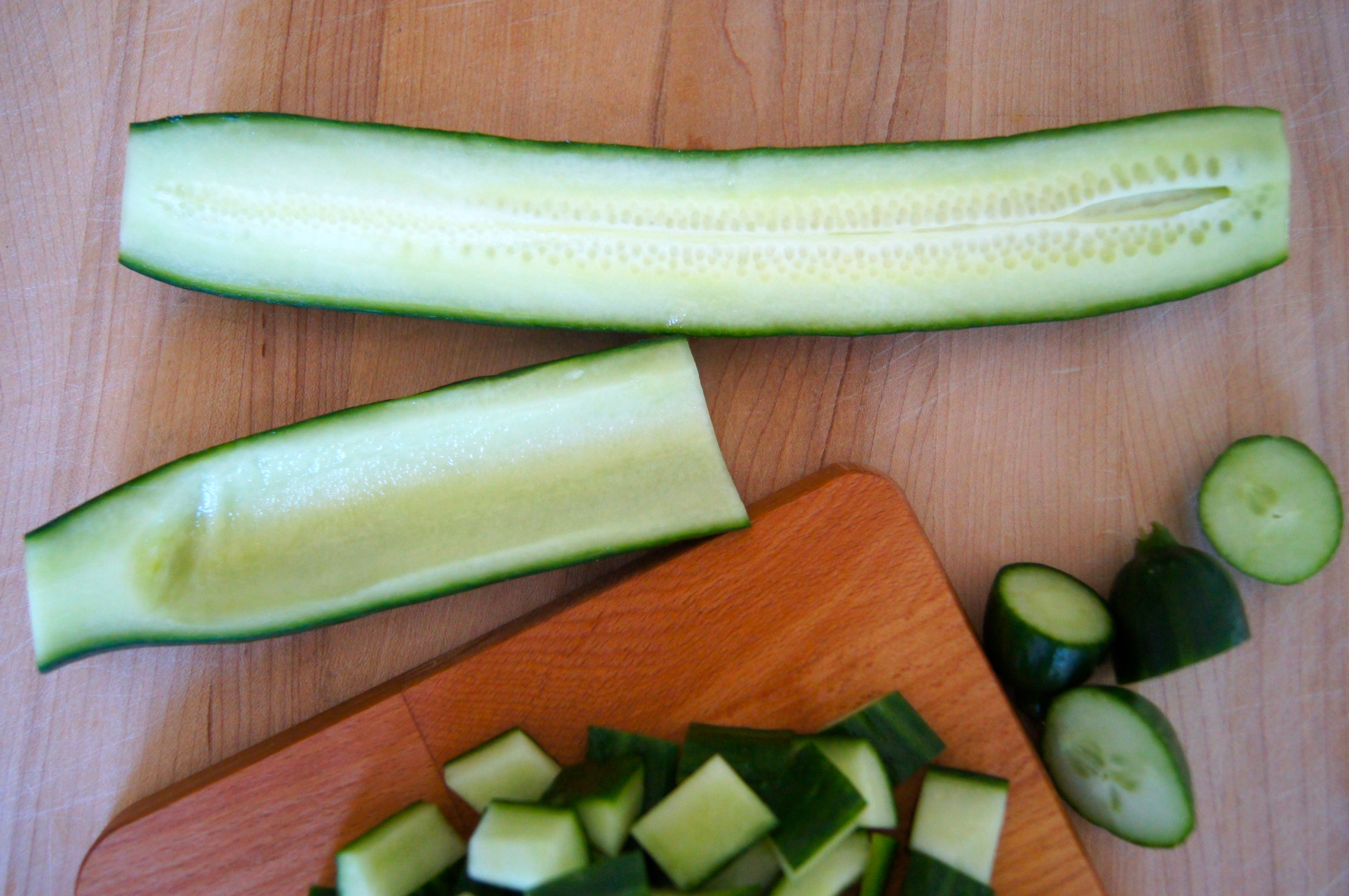 2 English Cucumbers, halved lengthwise, seeded and diced into 1-inch pieces