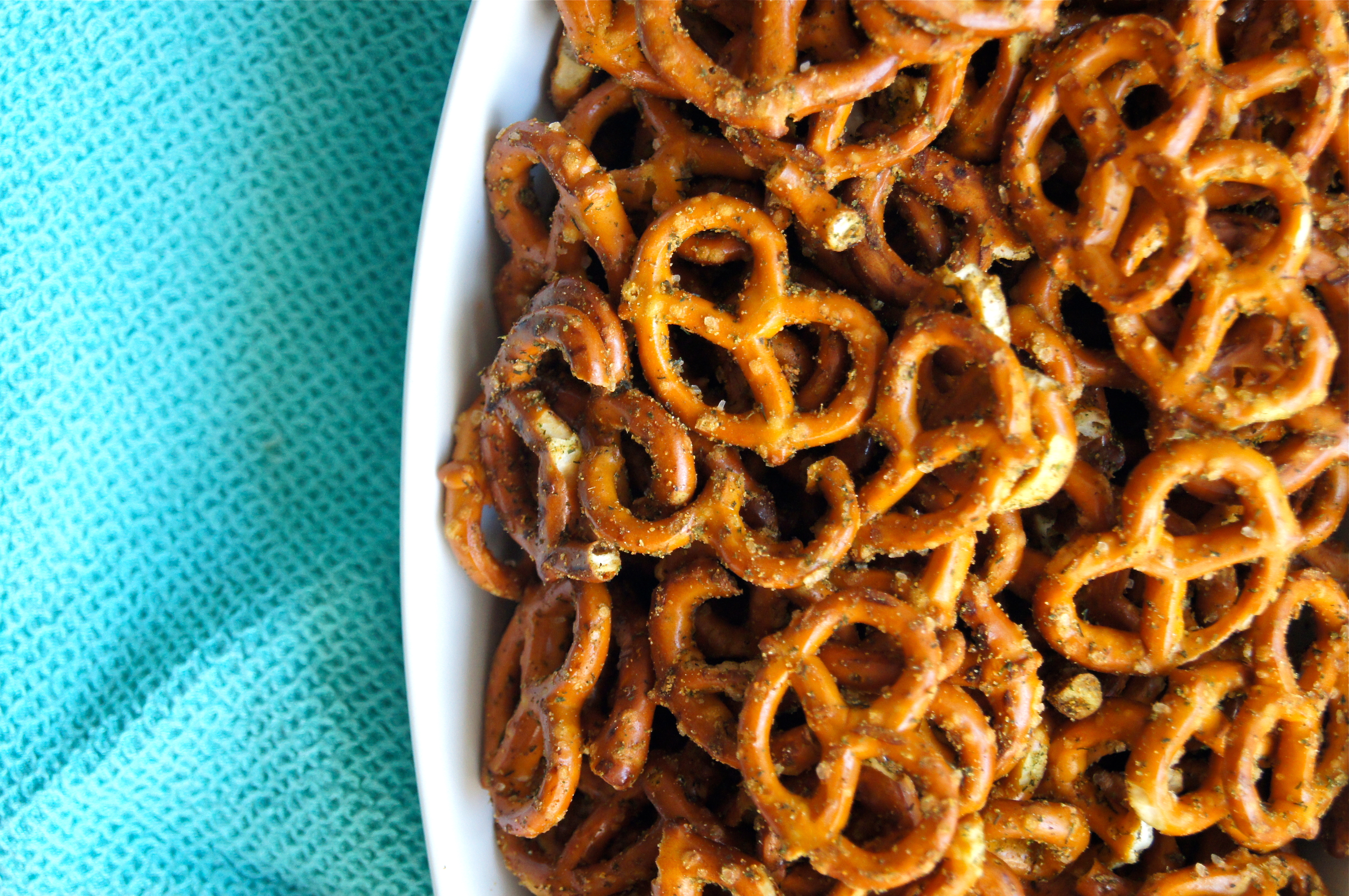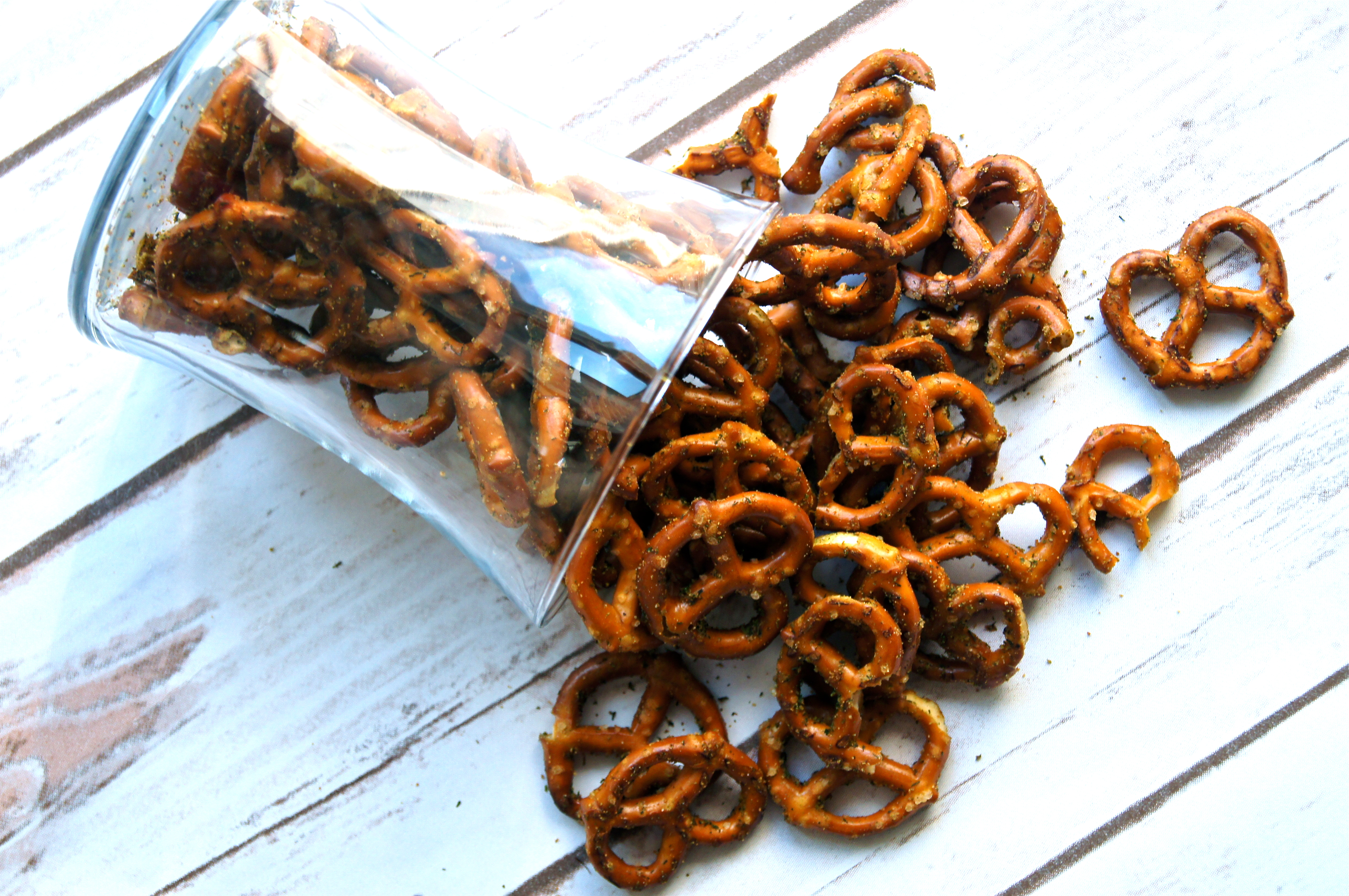 My husband asks for them so often I had to try out a way to lessen the guilt a tad bit when I make them at home, because they frequent our snack jar more often than they probably should. Now is my version healthy? I wouldn’t go that far. But a bit better than the original recipe. And they taste pretty darn awesome, too. Not quite as buttery as the original, but the flavor is spot on and the crunch, with using gluten free pretzels, is off the charts; just how I like a pretzel. They are an awesome snack for this game-watching-munching time of year.