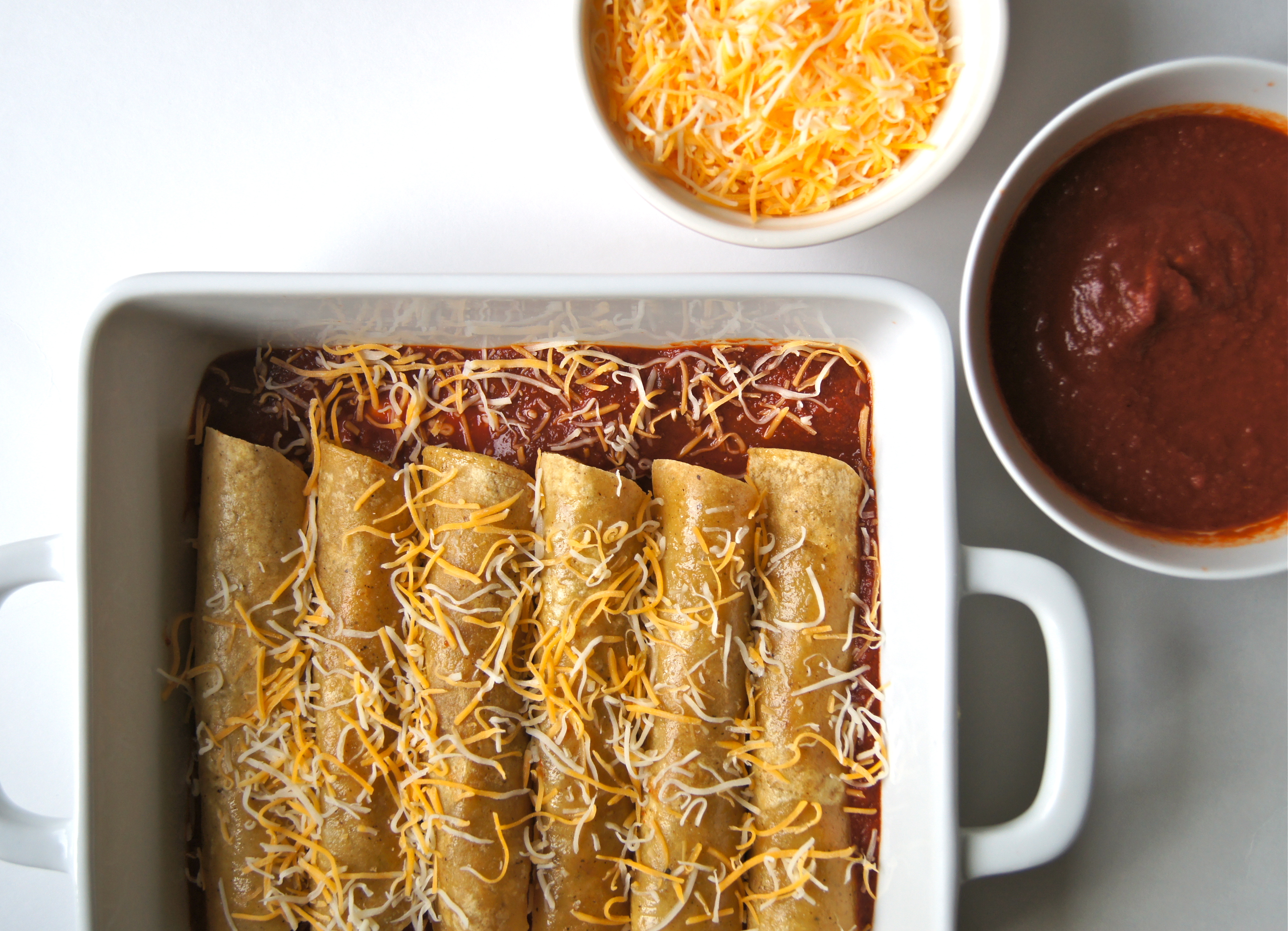 So, I’ve never made genuinely homemade enchiladas.  Yes, I’ve put together a pan of these Mexican delights with a jar of store bought enchilada sauce but they are always just mediocre.  Homemade enchilada sauce always seemed so intimidating. So time consuming.  But after a little trustee old interweb research I finally found a super simple method that blows any store bought sauce out of the water.  Thank you, Emeril Lagasse.  From the bottom of my Mexican-food-loving heart.
