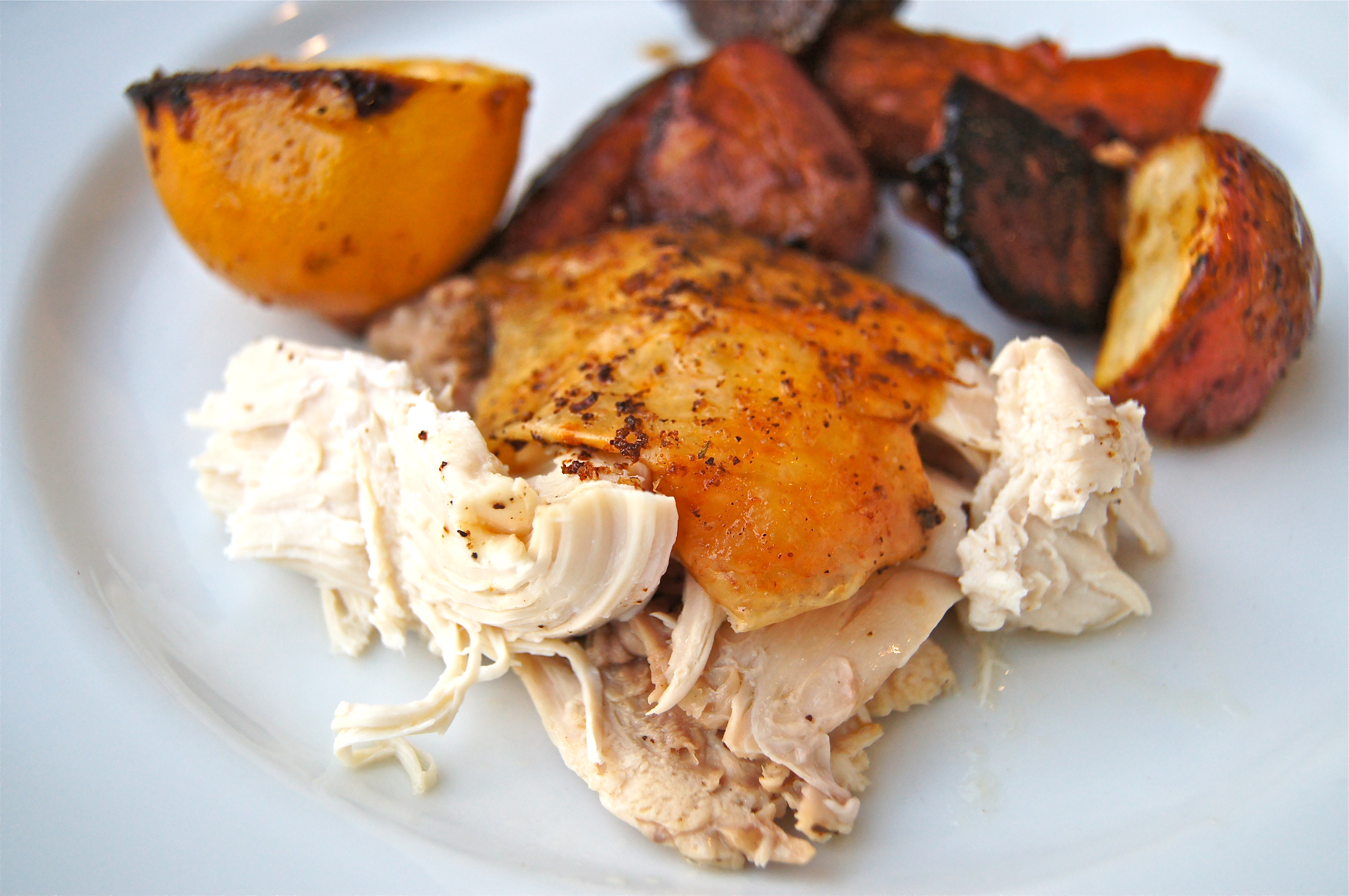 A perfect meal for any night of the week…and that leftover chicken, use it and abuse it as an impeccable blank canvas for any sandwich, pasta, taco, soup, quesadilla or salad for later on in the week. 2 or 3 meals for the price of 1. The bargain shopper in me has seen the light!