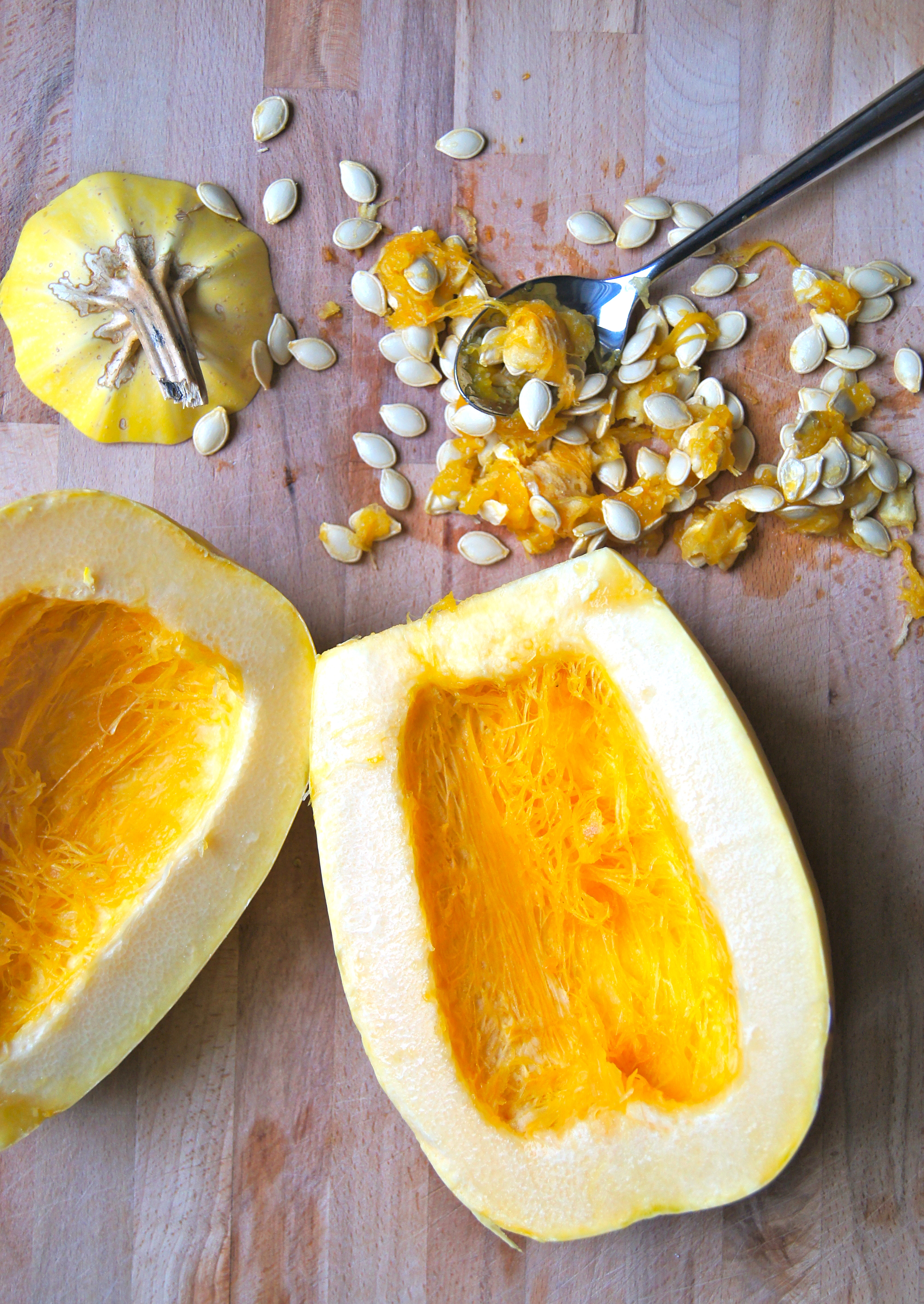 But my little unsatisfied food brain got to thinking….if Carbonara is so delicious and weeknight savvy with spaghetti pasta…why the heck couldn’t it be with spaghetti squash?