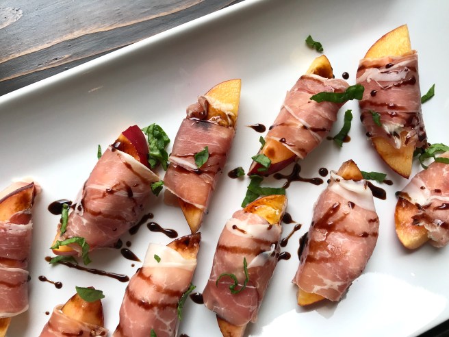 When ready to serve, drizzle the balsamic glaze over the proscuitto bundles and sprinkle with basil, if desired.