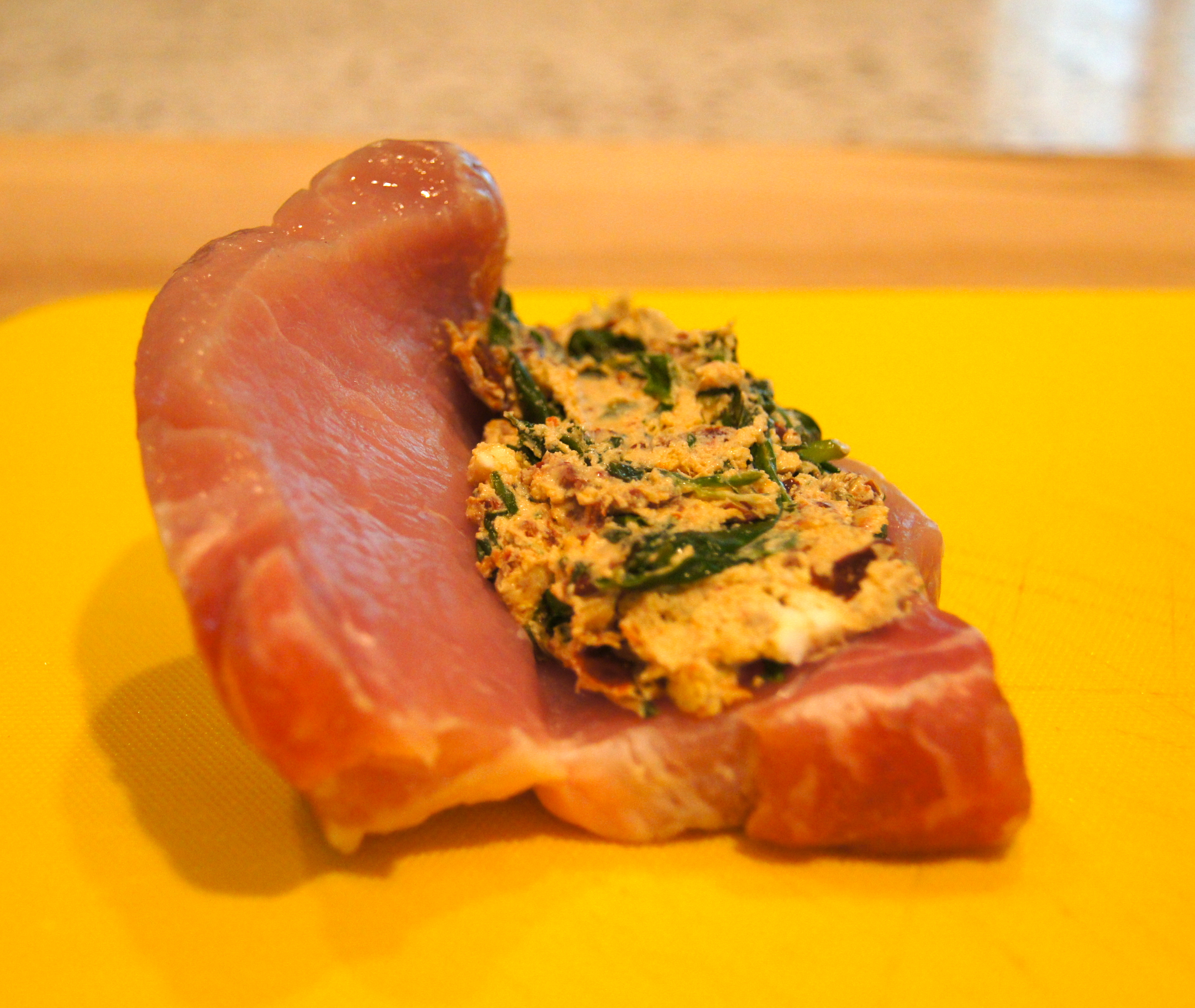 Goat Cheese, Spinach and Tomato Stuffed Pork Chops