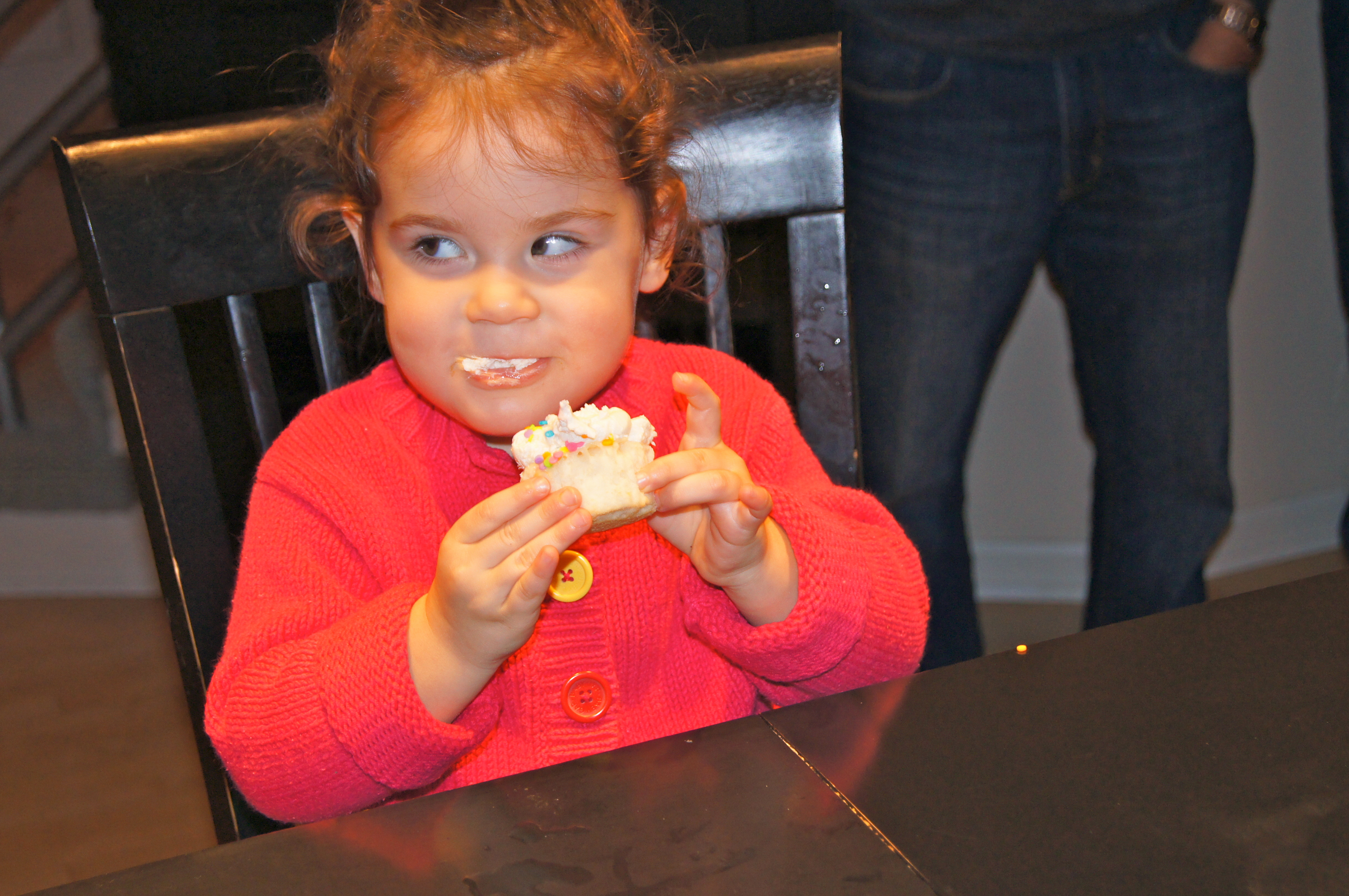 So, mission accomplished my dear friends. I officially granted Georgia her birthday wish and I would have to say she was very pleased. I mean, look at this face! This is the Oh Mommy You Really Did It This Time face she gave me after one bite. Clearly I will be making them again for her next year 🙂