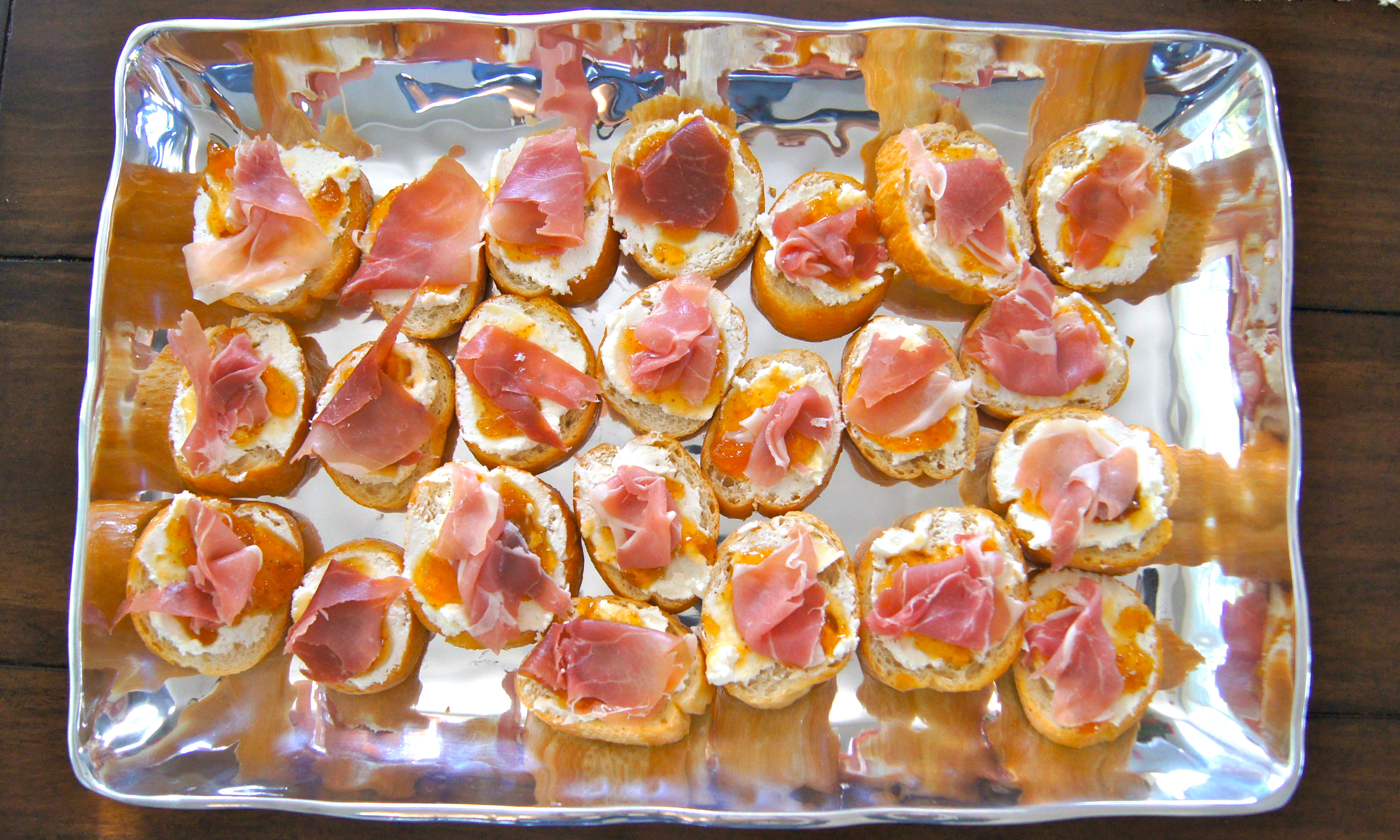 Now that turkey day has come to an end the next sha-bang and round of holidays is upon us…which means lots of parties, lots of celebrating and lots and LOTS of food. This is the time of year I feel most thankful for yoga pants and elastic waists….but I’ve said it before and I’ll say it again: all good things in moderation. This is also the time of year where I tend to run out of appetizer and small bite ideas to take to parties to share. It can be so difficult to find something you can make ahead of time and easily transport that tastes delicious and is simple to make. This crostini is all of that and then some. It tastes amazing…sweet, salty, creamy, garlicky, crunchy and I assure you it will impress even the biggest foodies of the bunch. You’ll be asked for the recipe time and time again and the best part is….it’s hardly even a recipe at all; its so simple!