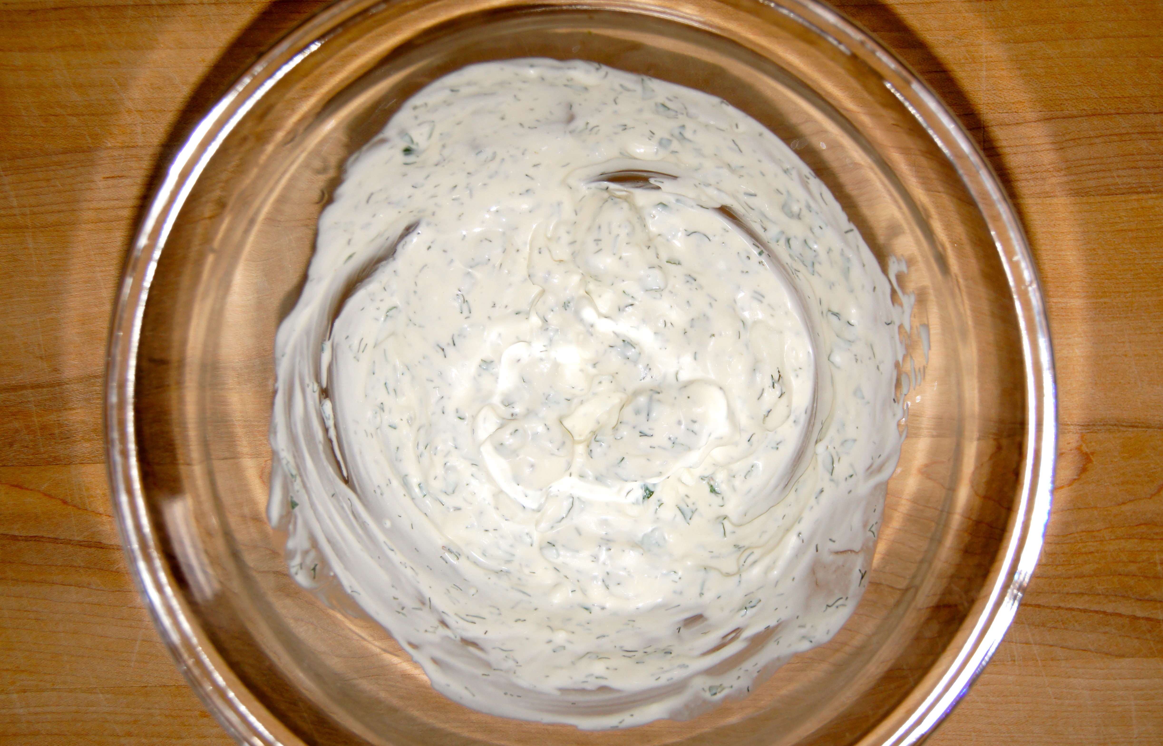In a medium bowl whisk together yogurt, mayonnaise, goat cheese, mint, dill and lemon juice. Lay fish skin side down on the prepared baking sheet. Season the top with salt and pepper and spread the yogurt/goat cheese mixture evenly among the top of fillets. Drizzle the remaining 1 tablespoon olive oil over the top of the fish. Broil the fish about 8 inches below heat until fish is cooked through, about 15 minutes. Serve with tomatoes. Serves 4.